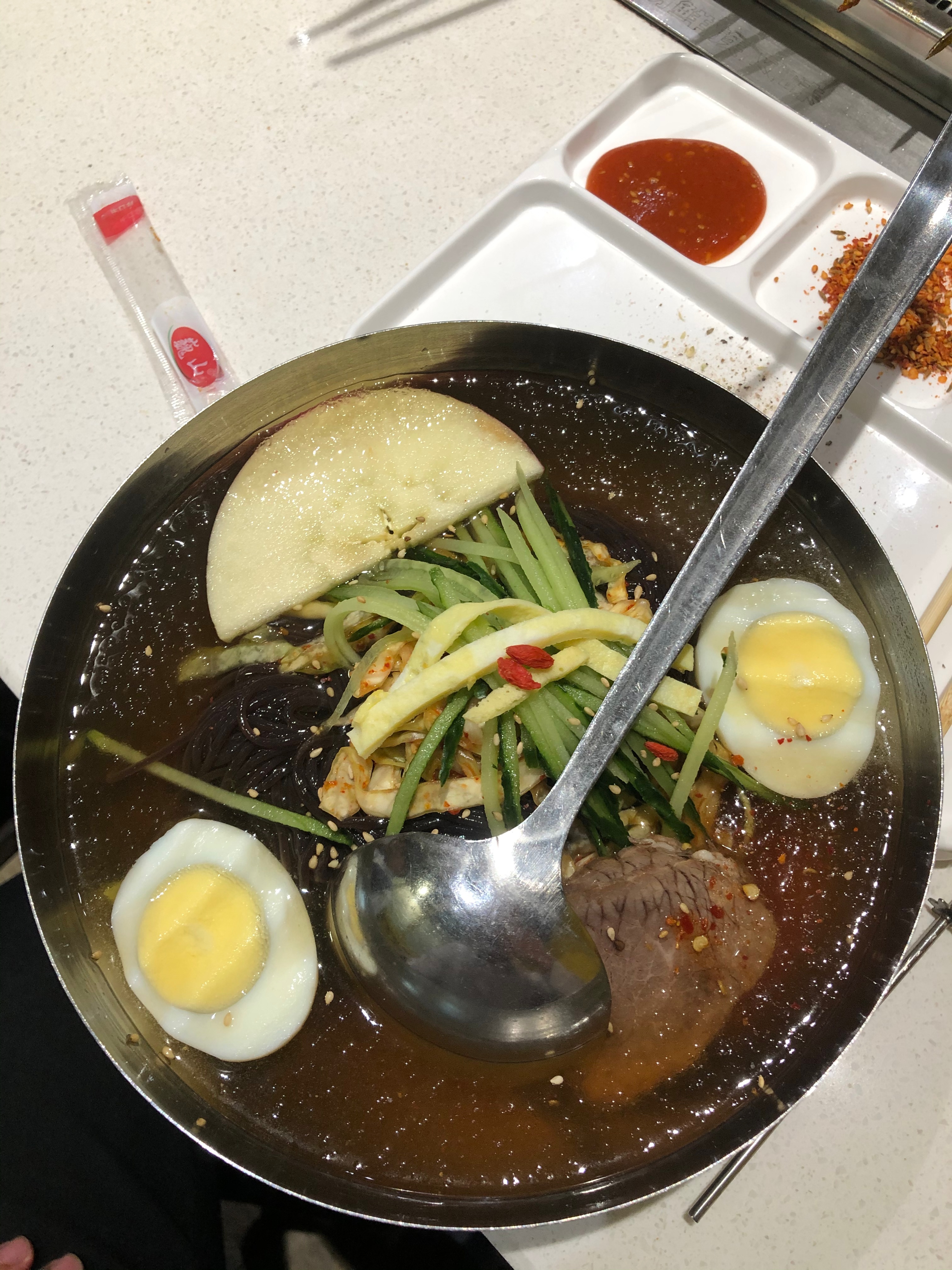 맥주는 저렇게 링거팩에 담아서 주던데, 예전 대학에서 많이 봤었던터라 크게 신기하지는 않았고 냉면은 한국이랑 다르게 초 맛이 강하게 나는 맛이었는데, 개인적으로는 맛있게 먹었다.